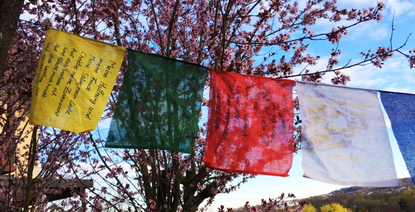 Gebetsfahnen wehen im Wind